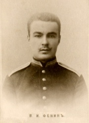 Фенин, Валериан Иванович. Окончил Петровский Полтавский кадетский корпус в 1908 г. Киевское военное училище. 6 августа 1910 г. произведен в 33 пех. Елецкий полк.